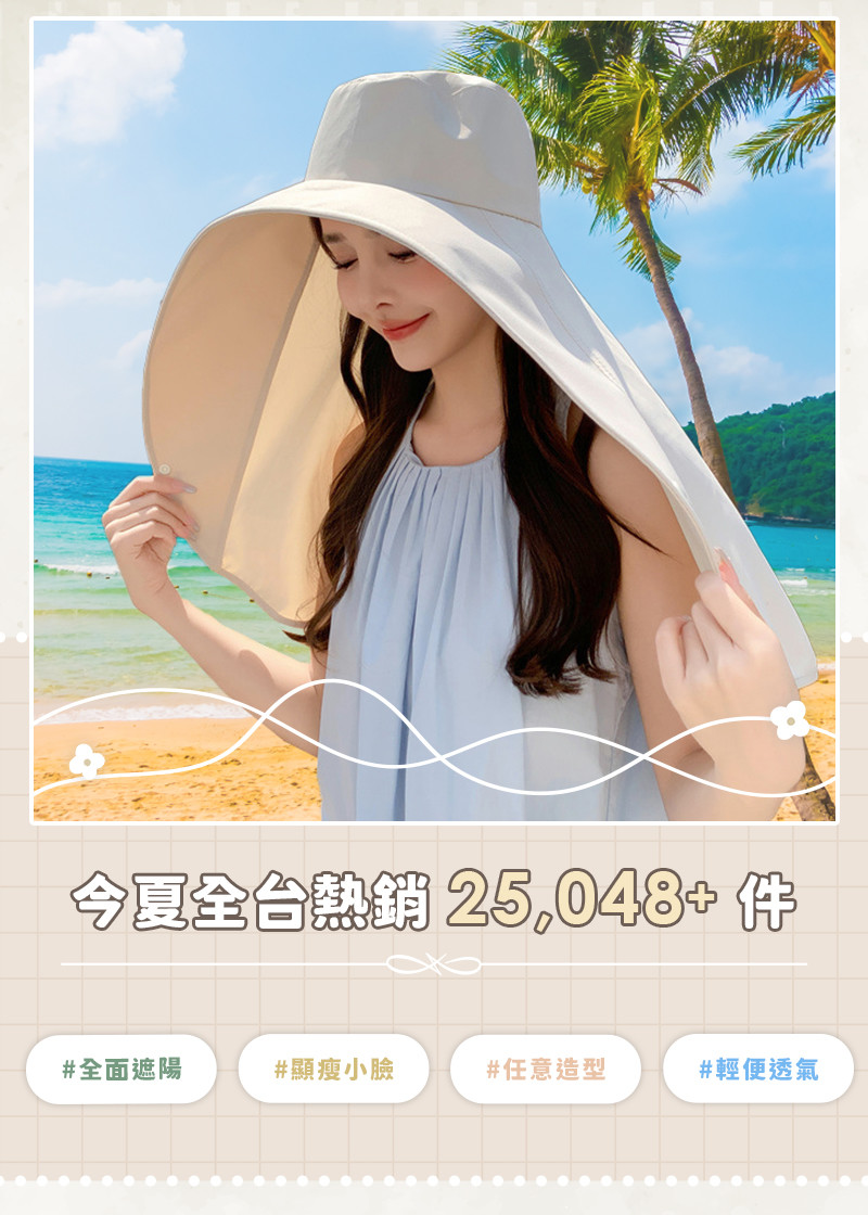 【夏季熱銷TOP1單品】 😍 披肩防曬帽讓妳美美登場 🫶一戴V臉,時尚完成度UP! 🫶加大帽簷,全面防護,拒絕色差! 🫶髮洞設計,髮型依舊完美! 🫶記憶帽簷,風格造型隨心變!